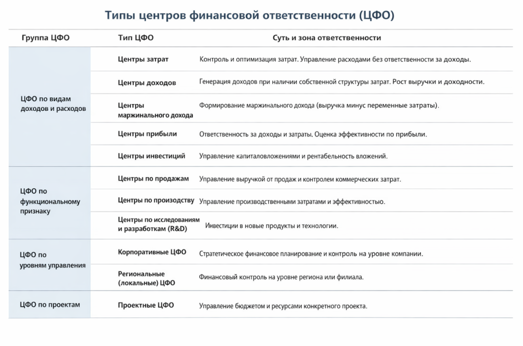 • Центры финансовой ответственности — это инструмент, который превращает размытые расходы и доходы в управляемые зоны ответственности.