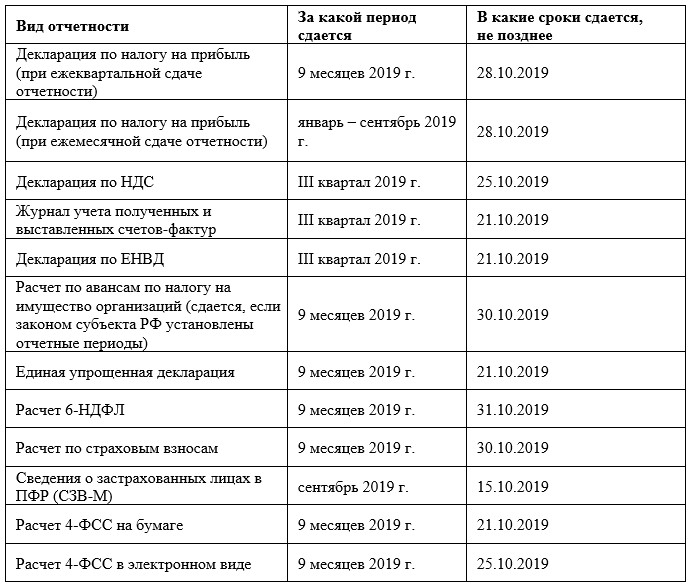 Заканчивается сентябрь, и компаниям нужно будет подавать отчетность за 9 месяцев 2019г. Расскажем подробнее, какие виды отчетов и в какие сроки нужно представлять.